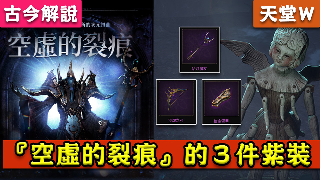 《天堂W》『空虛的裂痕』的『3件紫裝』(哈汀魔杖、空虛之弓、信念臂甲)